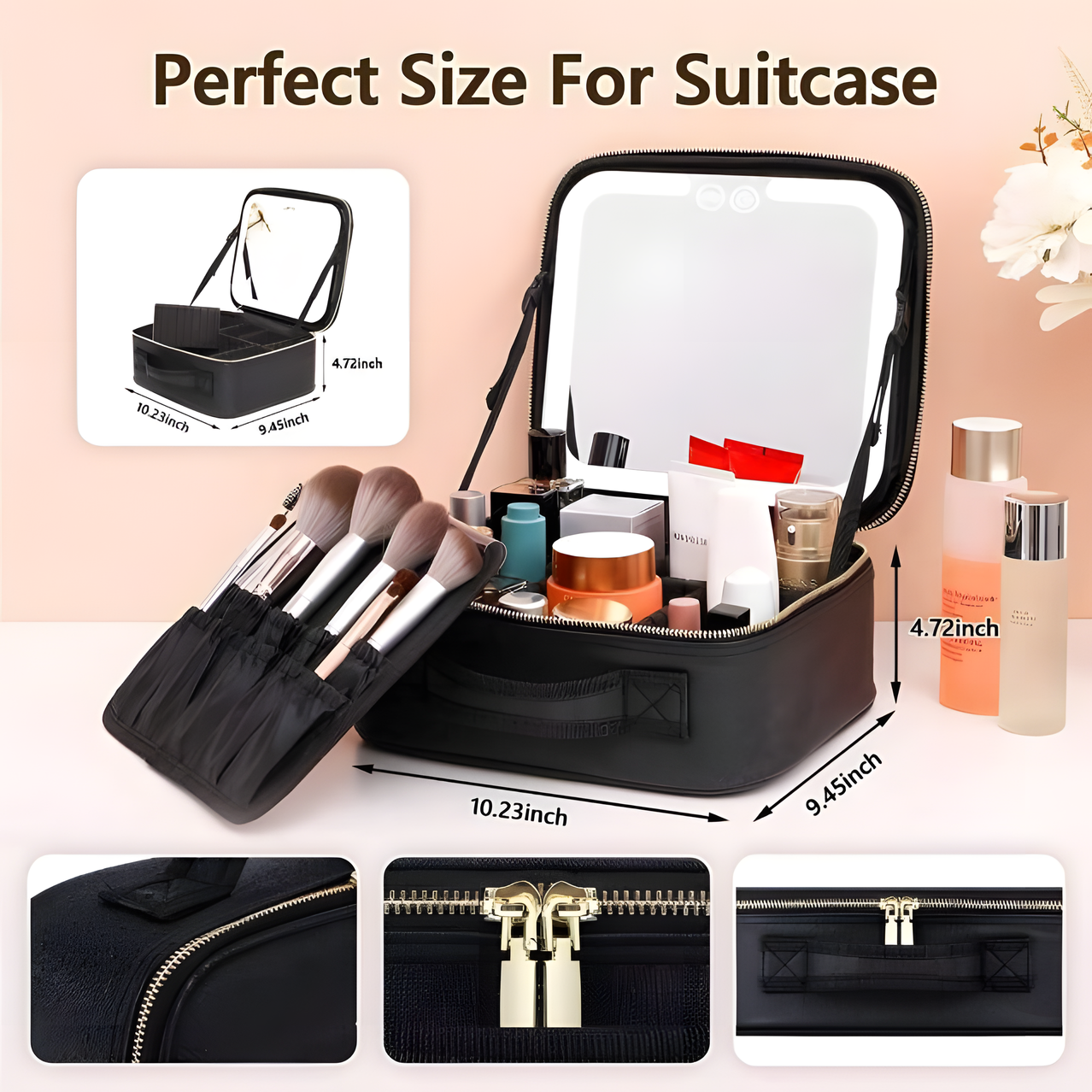 Geanta cosmetice dotata cu oglinda LED AZeira®, compartimente reglabile, potrivita pentru organizarea cosmeticelor acasa sau in voiaj, profesionala