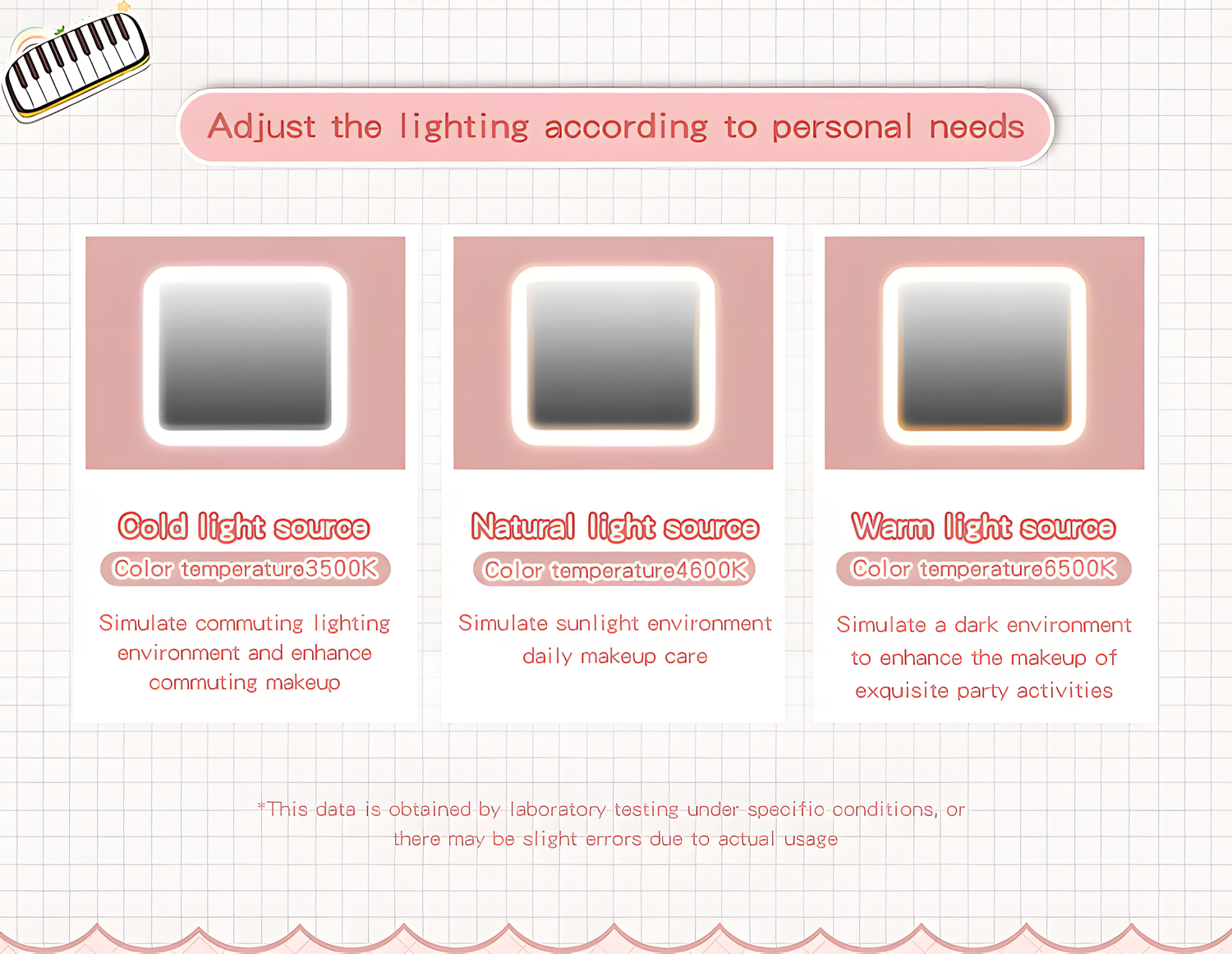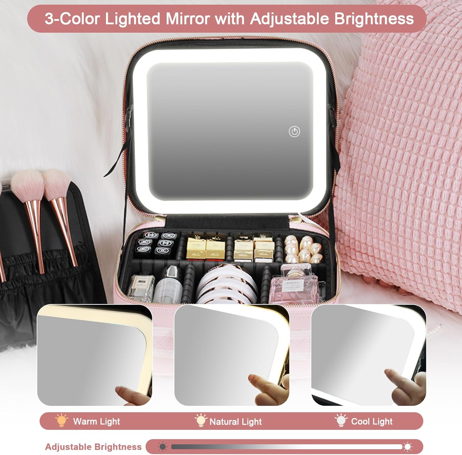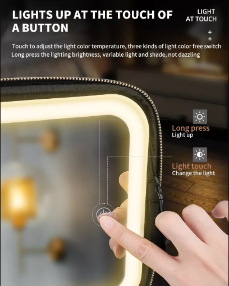 Machiaj perfect in orice lumina: Oglinda LED cu 3 niveluri de intensitate iti ofera lumina perfecta pentru a aplica machiajul cu precizie, indiferent de ora din zi sau de locatie.