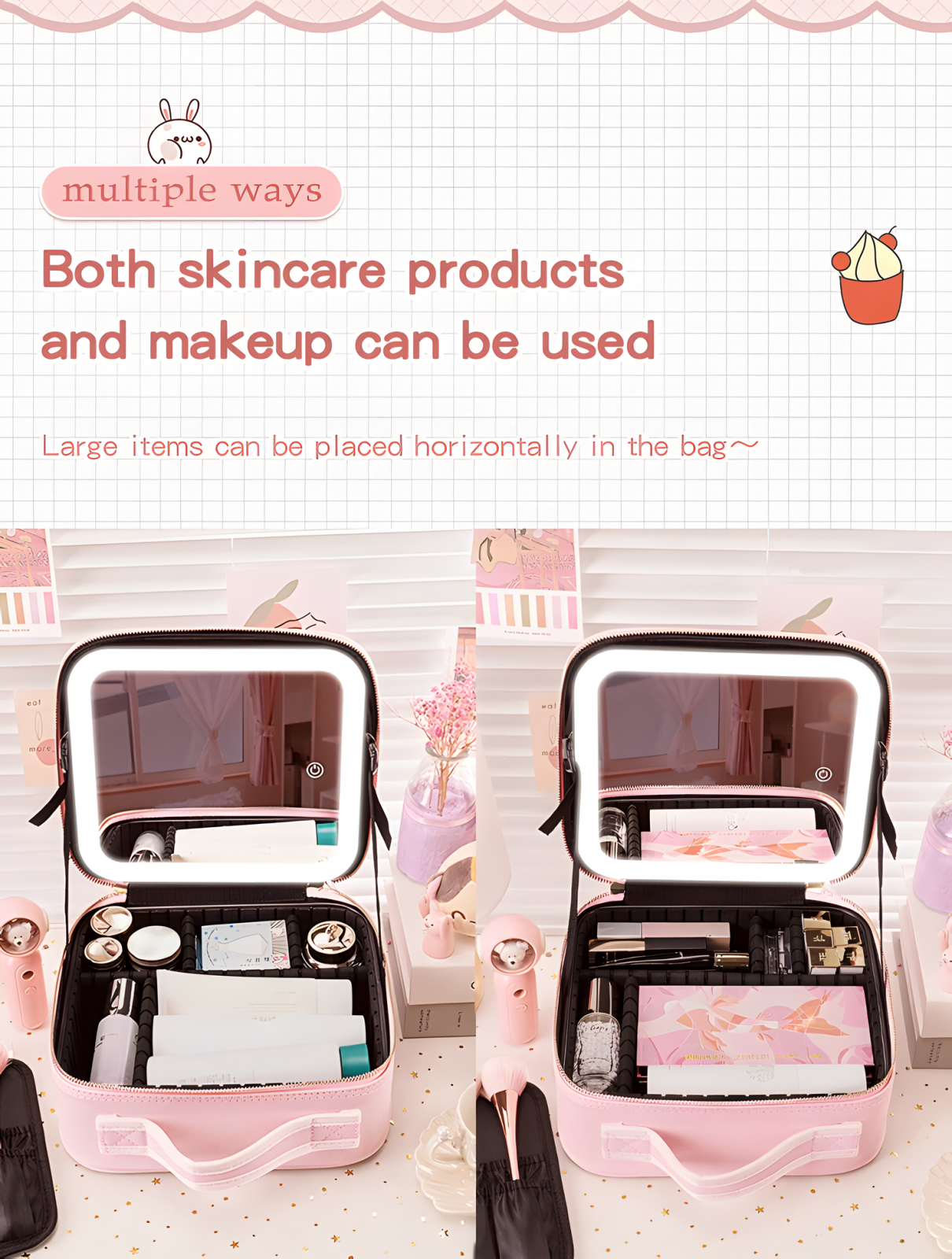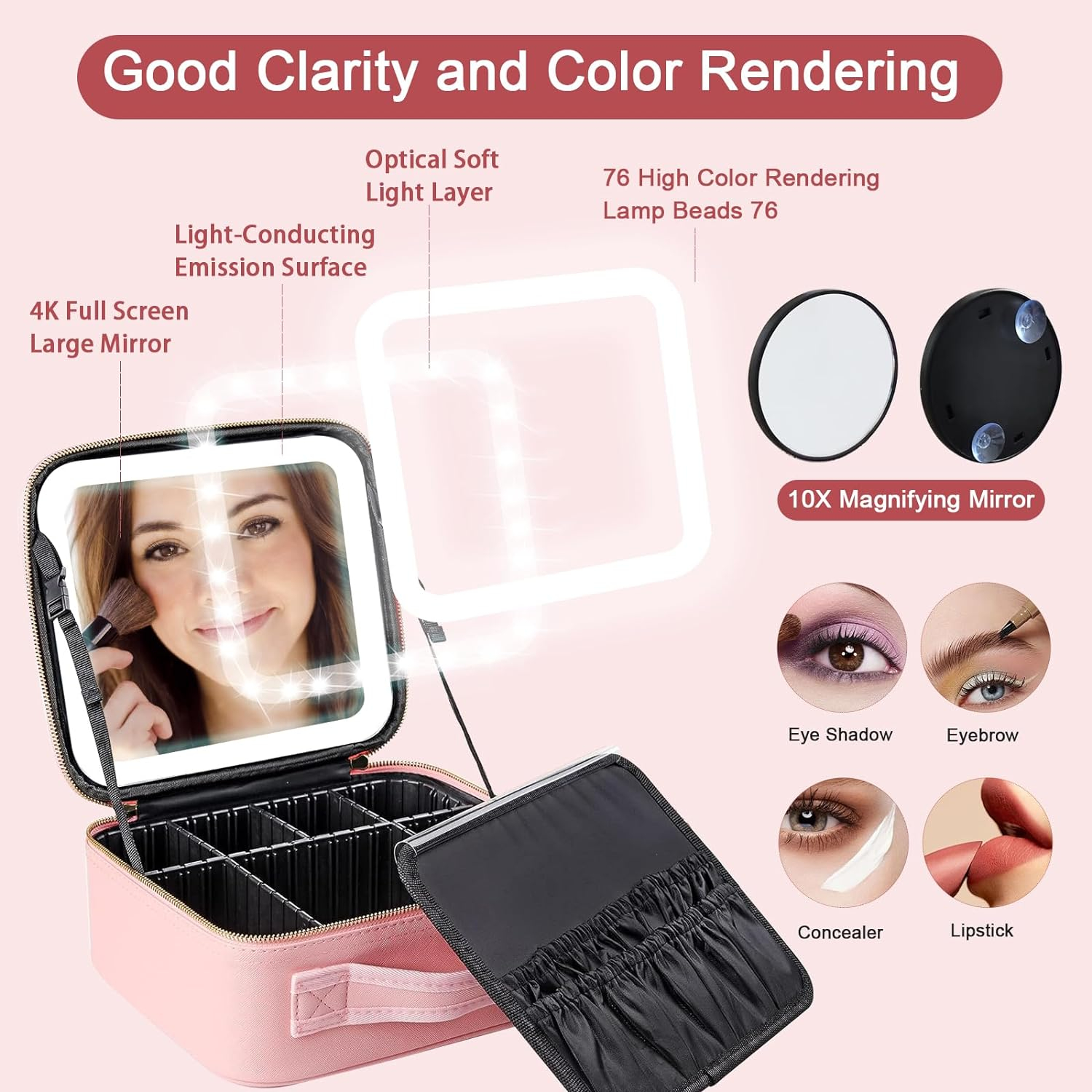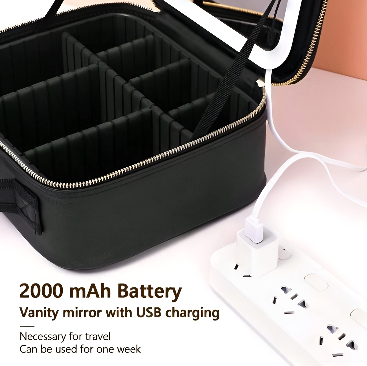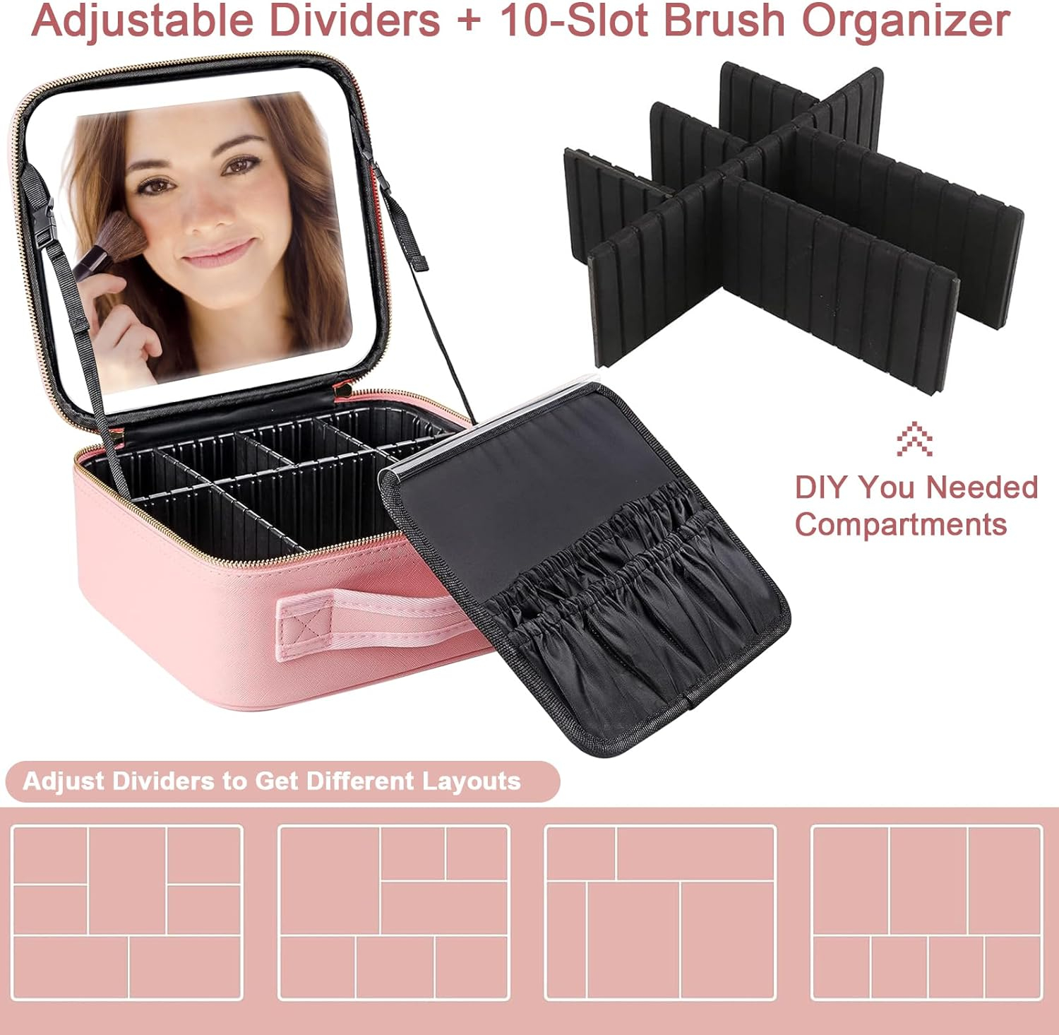 Organizare impecabila: Compartimentele reglabile si clapeta detasabila iti permit sa iti organizezi eficient produsele de machiaj, de la cele mai mici accesorii la palete voluminoase.